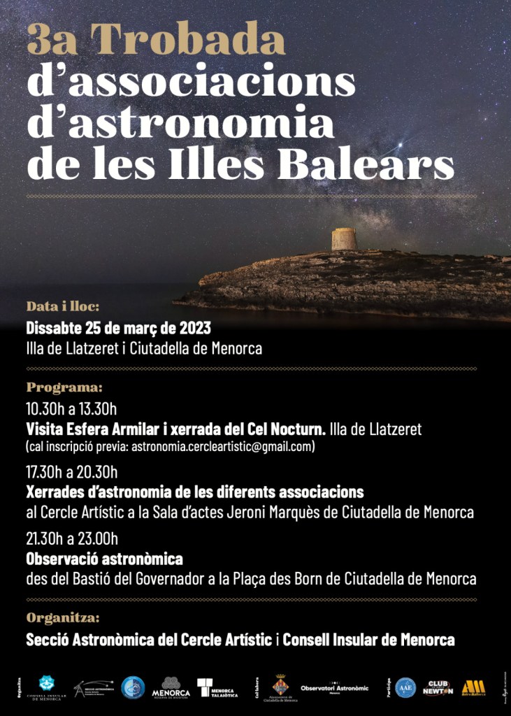 Gràcies a en Pep Marcús (Club Newton) i a en Joan Lluís Pons (Secció Astronòmica del Cercle Artístic) en Sebastià va poder assistir a la III Trobada d’Associacions d’Astronomia de les Illes Balears. A més d’exposar tota la feina feta fins llavors, vàrem poder conèixer molts dels membres de les associacions illenques. Va ser una molt grata experiència!