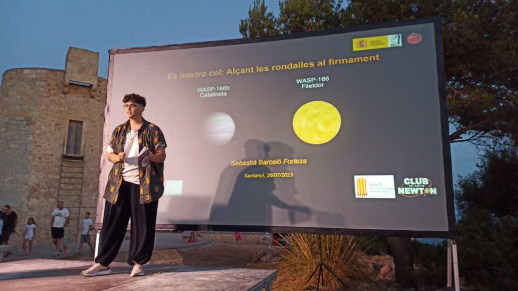 Un cop na Lidia Pérez contà la rondalla i en Sebastià explicà la fita al públic, vàrem aturar tots els llums de la zona. Era hora de treure els telescopis del Club Newton. Va ser una nit explèndida i en Pep Marcús, amb el seu equip, va captivar els santanyiners. Repetirem!